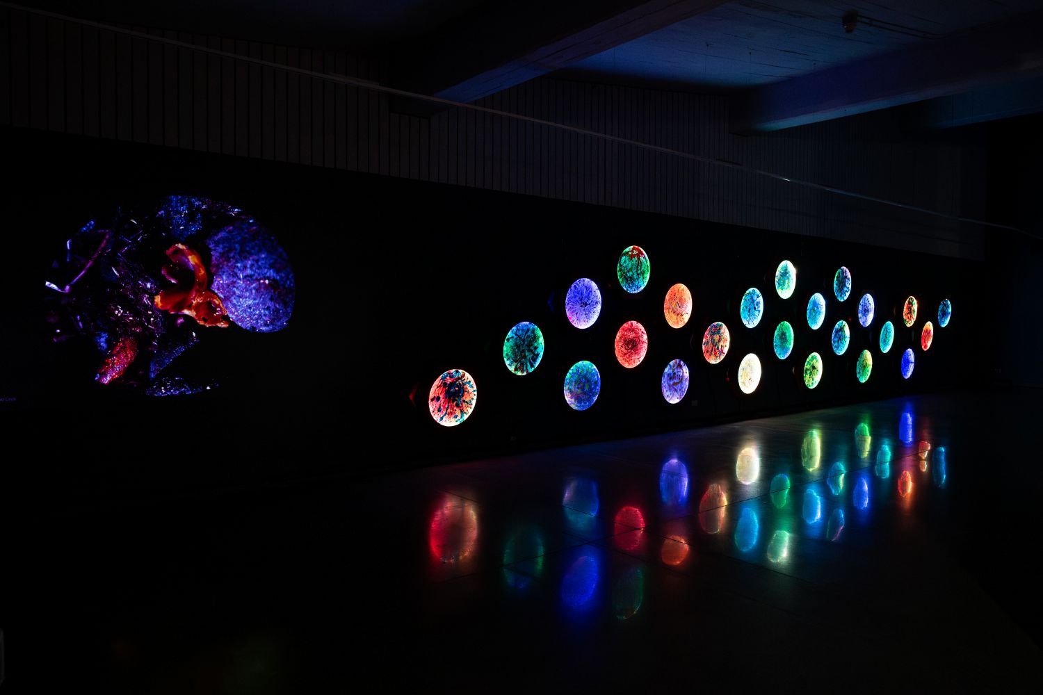 Las 24 pinturas electrónicas que la conforman, organizadas en tres bloques —planeta raíz, simbiosis-micorrizas y agua raíz—, invitan a imaginar el mundo subterráneo desde distintas perspectivas. Esta experiencia se amplifica con un video que documenta visualmente el bosque real, conectando la instalación con su territorio de origen. En su conjunto, “~~~ desde la raíz ~~~” entrelaza arte, ciencia y tecnología en una experiencia transmedial que desestabiliza la mirada antropocéntrica, revelando el mundo vegetal como un sistema complejo, sensible e interconectado, del cual depende la vida de otras especies, incluida la humana.