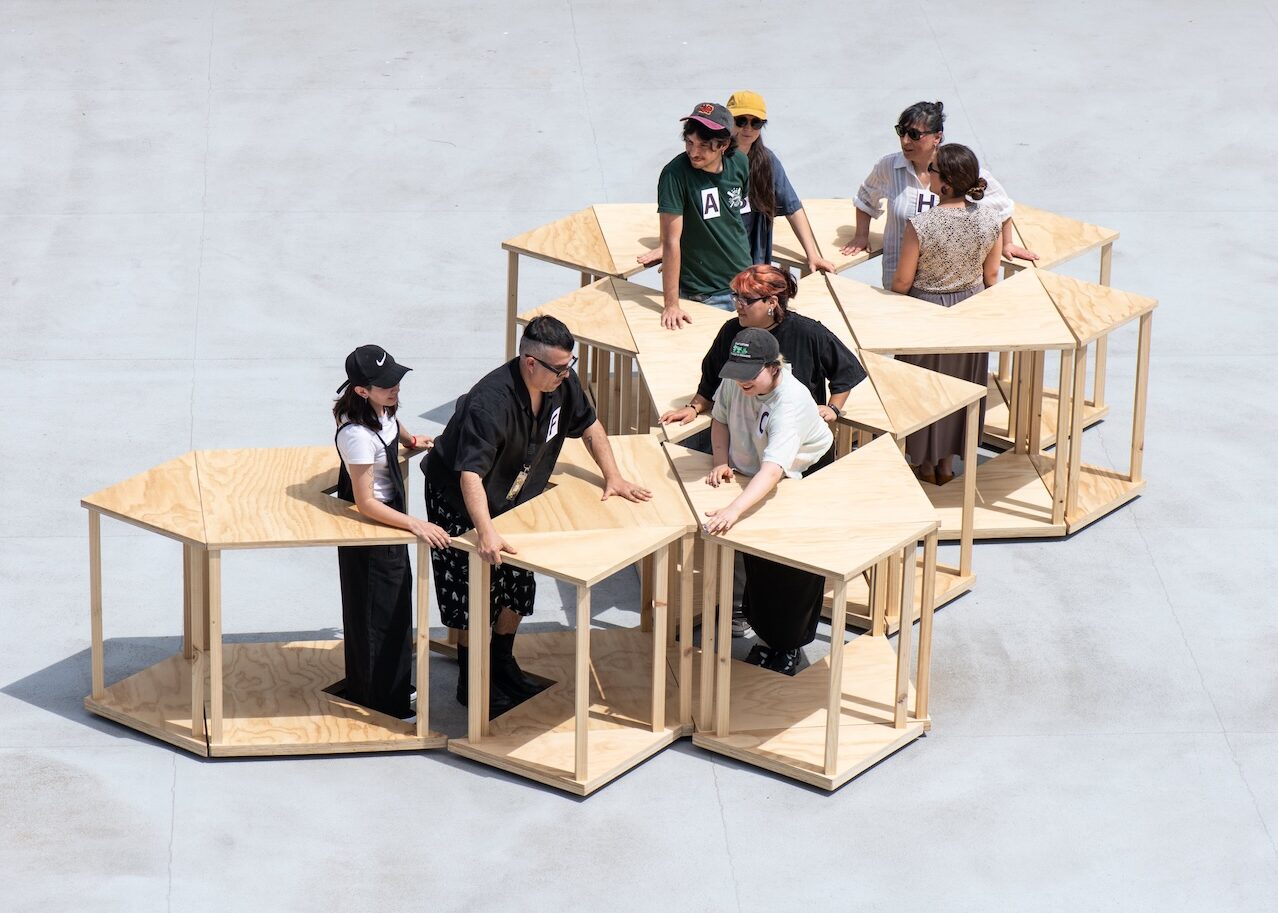 “Caravana del Amor” propone un experimento para la construcción de un dominio compartido. A través de un ejercicio cooperativo, ocho personas producen una serie de configuraciones espaciales compuestas, utilizando piezas móviles controladas individualmente. La circulación incómoda de estos objetos revoltosos se consolida poco a poco en un bloque de mobiliario común, formado por unidades contiguas […]
