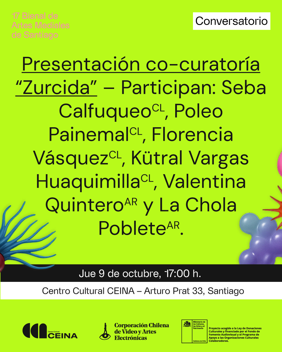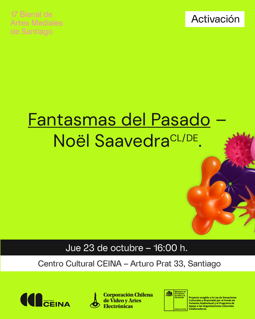 Desde el 9 al 26 de octubre de 2025 estará exhibiéndose en CEINA parte de la curatoría de la 17 Bienal de Artes Mediales "Hiperrealidades", con obras de Pipilotti Rist (CH), Albertina Carri (AR), Yto Aranda (CL), Francisco Belarmino (CL), La Variante Chola (PE), Noël Saavedra (CL/DE), Leticia Almeida (Tanky) y Mathías Chumino (C03RA) (UY), […]