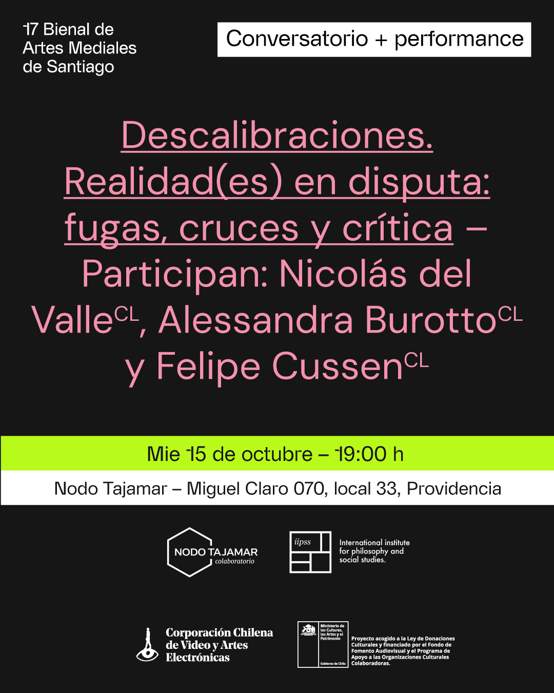 En sintonía con la curatoría de la Bienal, que retoma y expande el concepto de hiperrealidad hacia la multiplicidad de lo real, este conversatorio indaga en cómo el arte medial, la literatura experimental y las prácticas curatoriales permiten pensar la coexistencia de realidades diversas, fragmentadas y simultáneas. La noción de descalibración funciona aquí como una […]