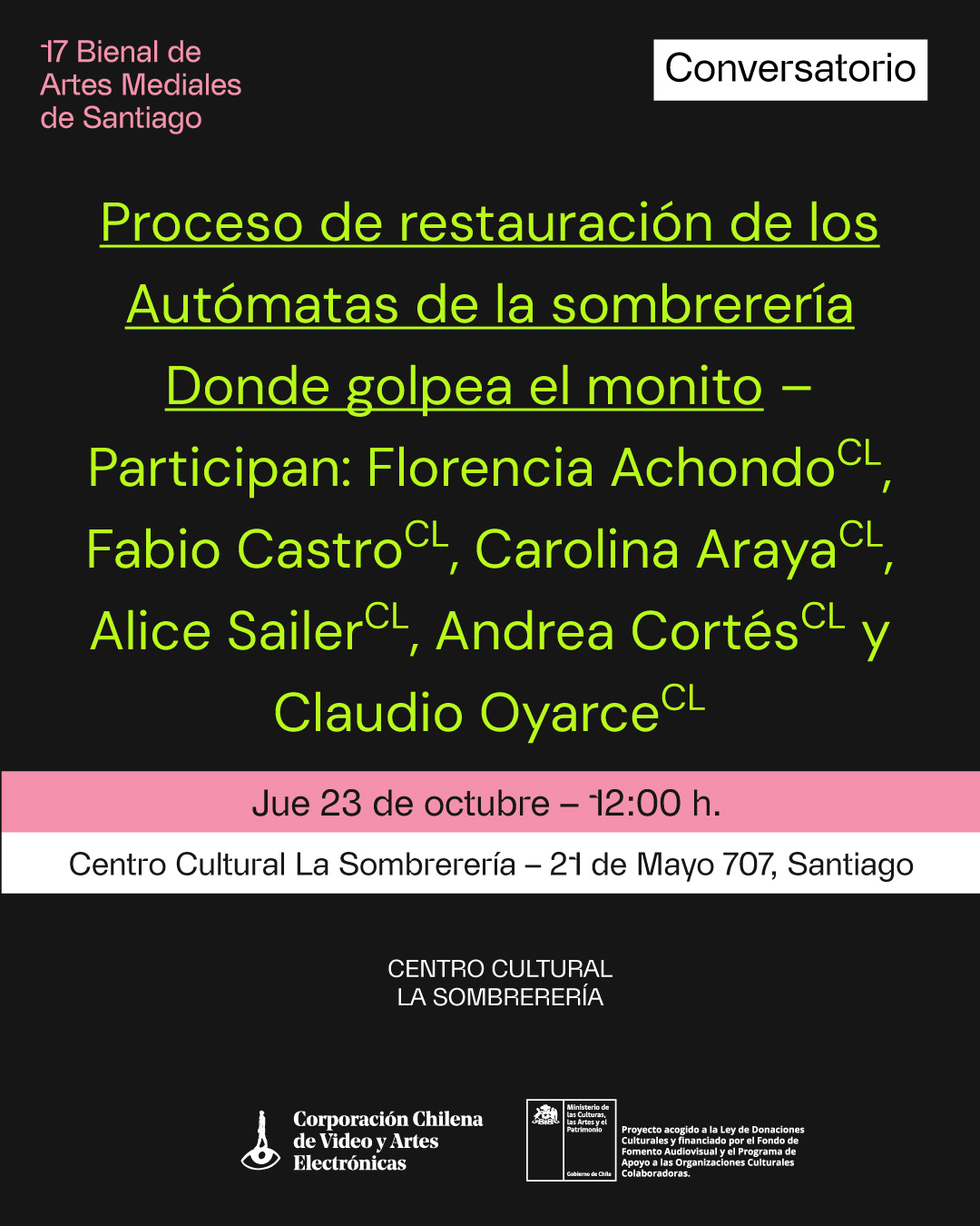 En el Centro Cultural La Sombrería, ubicado en la histórica sombrería "Donde golpea el monito", se realizará un conversatorio en torno a los procesos de restauración de los dos autómatas que conviven en ese espacio. Se contará con la participación del equipo de restauradores a cargo de la reparación de ambos autómatas, Florencia Achondo (directora […]